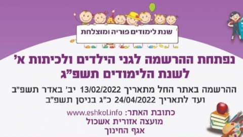 הרשמה לגני ילדים וכיתות א' - תשפ"ג