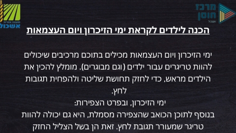 המלצות חוסן לקראת צפירות יום השואה והזכרון