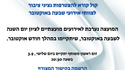 קול קורא להצטרפות נציגי ציבור לצוותי האירועים לציון שבעה באוקטובר