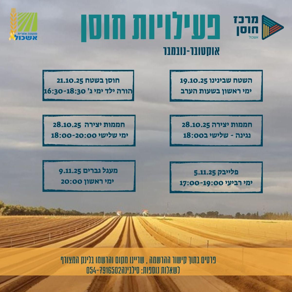 מוזמנות ומוזמנים לקחת חלק בסדנאות של מרכז חוסן אשכול שיחלו בחודשים אוקטובר-נובמבר.