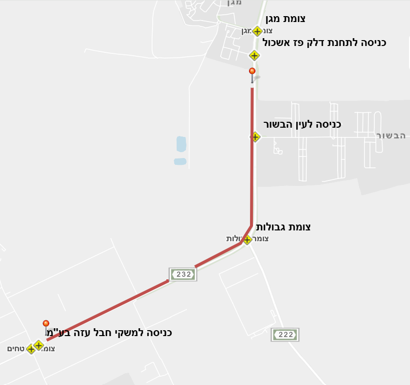 בלילה שבין יום רביעי לחמישי בין התאריכים ה-22-23/10/2025, מתוכננת העברת תנועה (שינוי תוואי נסיעה) בכביש 232 במקטע שבין צומת מבטחים ועד לתוואי שבין צומת הכניסה לישוב עין הבשור לתחנת הדלק פז אשכול.