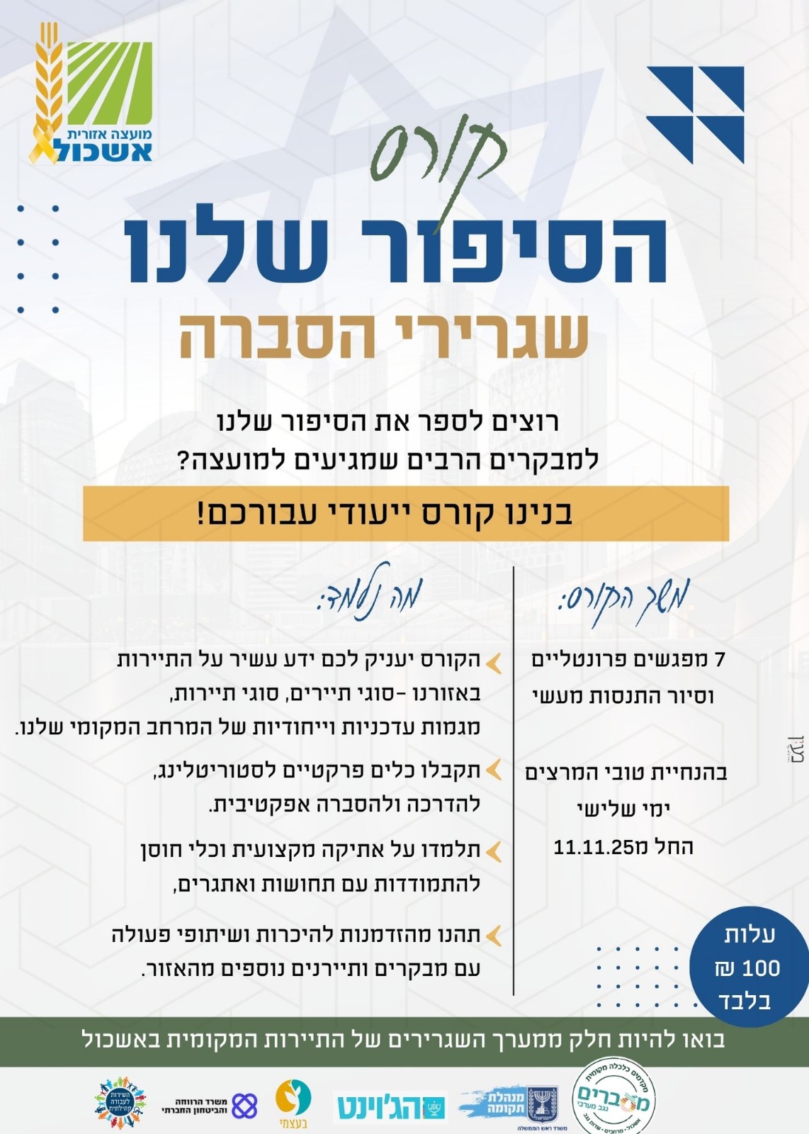 בנינו קורס מקצועי, ייחודי וייעודי עבור תושבי המועצה, בו תקבלו: