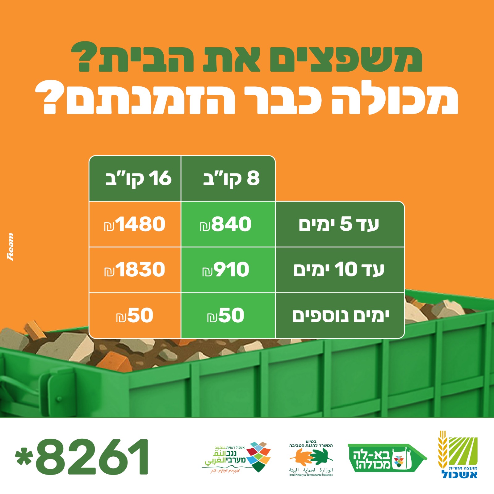 להזמנת מכולה: 8261*