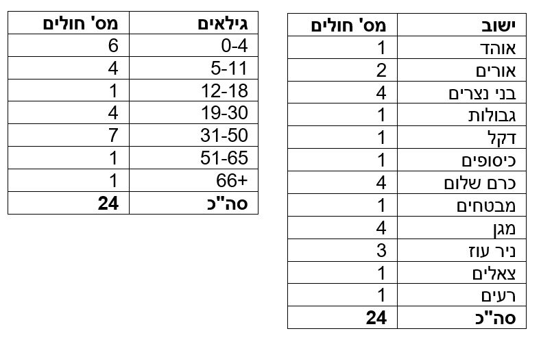 פילוח חולי קורונה לפי ישובים וגילאים | 31.12.21
