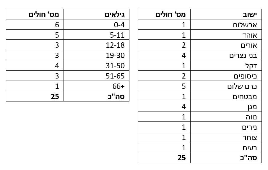 פילוח חולי קורונה לפי ישובים וגילאים | 1.1.22
