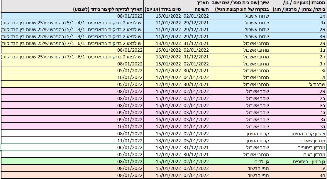 עדכון יומי על בידוד של מסגרות חינוך | 6.1.22