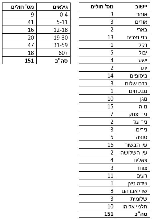 פילוח חולי קורונה לפי ישובים, גילאים ועדכון בידוד מסגרות חינוך | 7.1.22