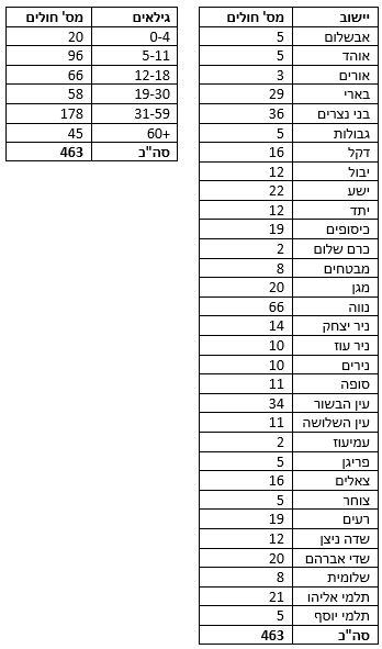 פילוח חולי קורונה לפי ישובים וגילאים | 13.1.22