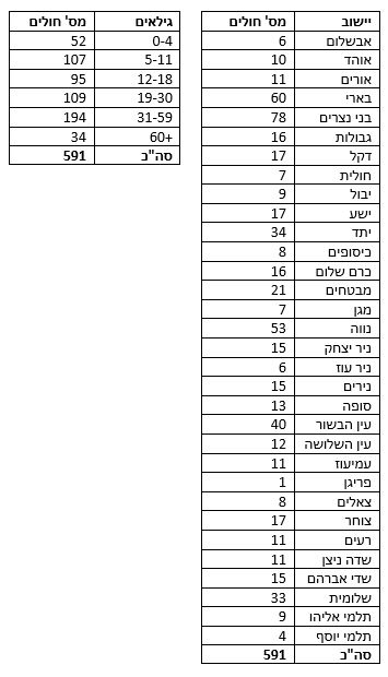 פילוח חולי קורונה לפי ישובים וגילאים | 26.1.22