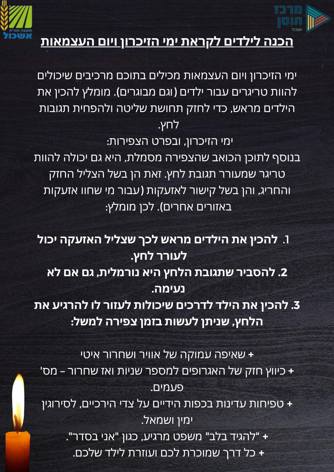 המלצות חוסן לקראת צפירות יום השואה והזכרון