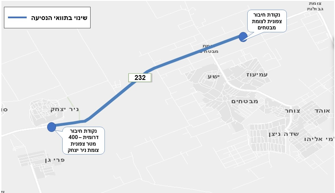 עדכון תנועה בכביש 232 בקטע שבין צומת ניר יצחק לצומת מבטחים