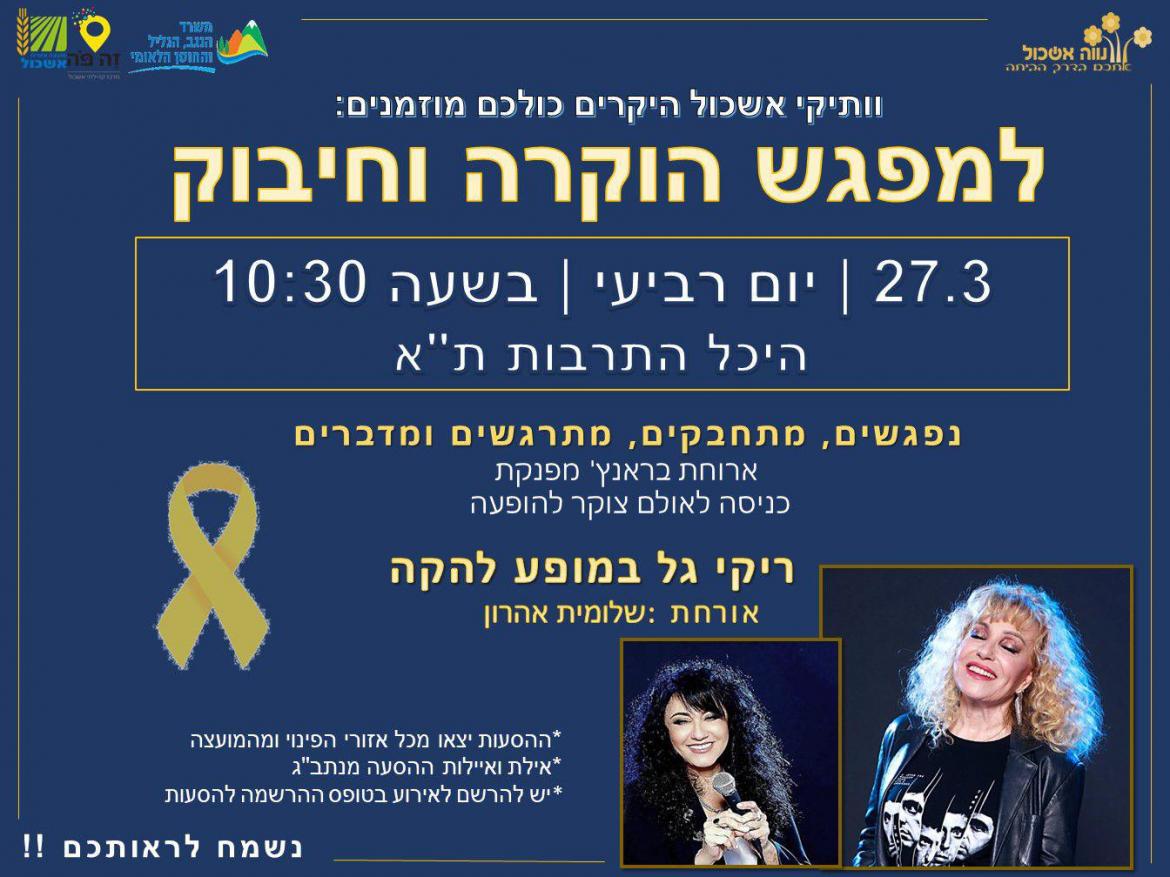 ותיקי וותיקות אשכול בגילאי 50+ מוזמנים ומוזמנות למפגש הוקרה וחיבוק עם הופעה של ריקי גל ושלומית אהרון