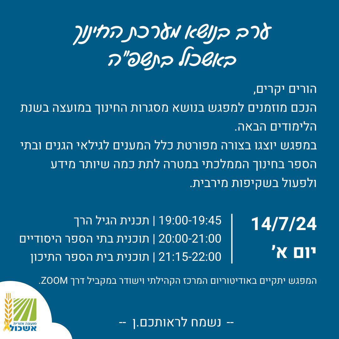 ערב בנושא: מערכת החינוך באשכול תשפ"ה