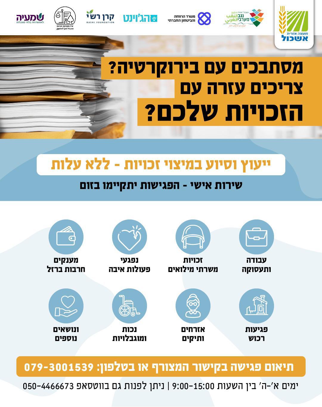 מוזמנים לתאם פגישה אישית בזום עם עובדת סוציאלית לסיוע במיצוי זכויות
