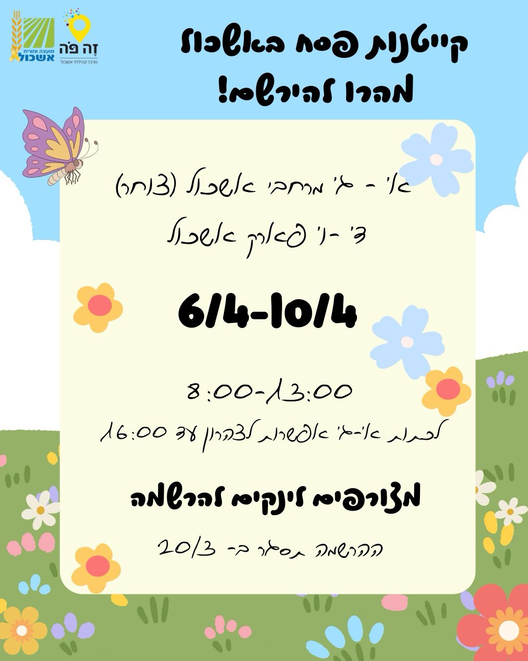 ההרשמה לקייטנות פסח באשכול נפתחה