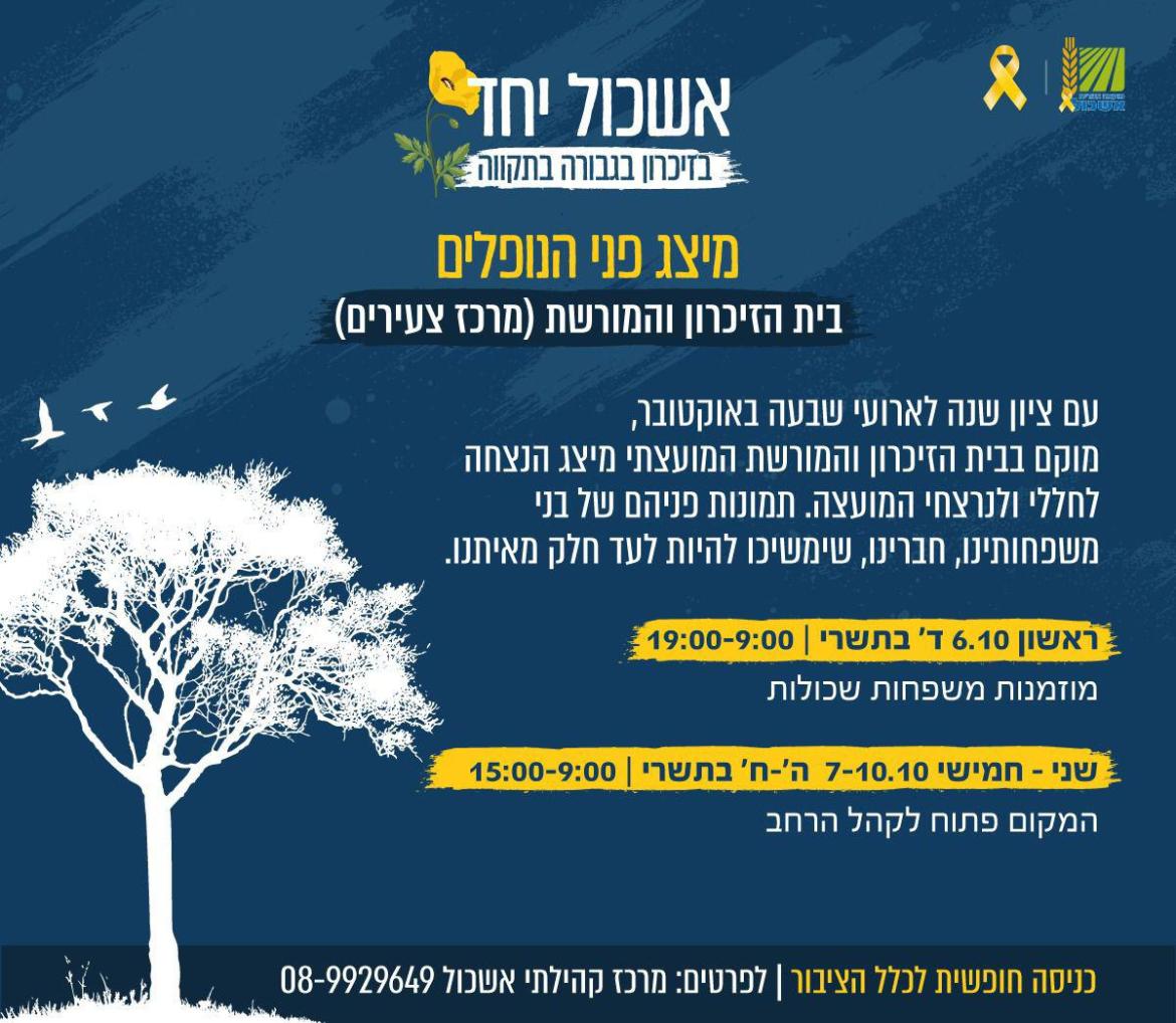 ביום ראשון 6/10 בין השעות 19:00-9:00 נפתח את בית הזיכרון והמורשת למשפחות השכולות.