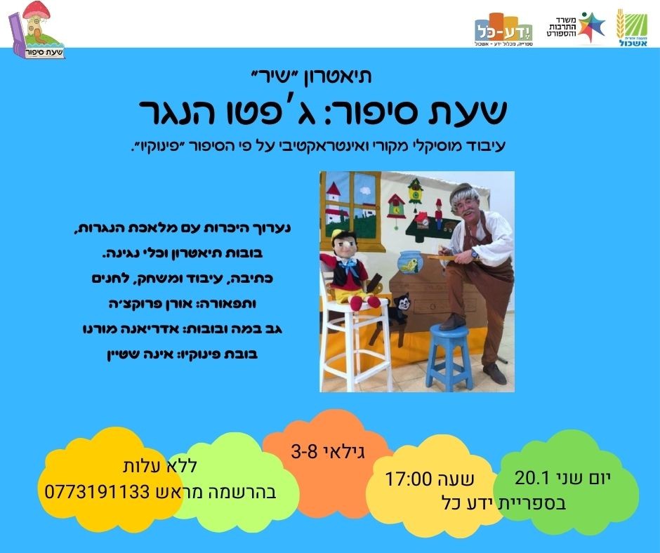 הוסף ללוח שנה 2025-01-20 00:00:00 2025-01-20 01:00:00 Asia/Jerusalem שעת סיפור : ג'פטו הנגר למידע מלא: http://www.eshkol.info/events/1188/ ספריית ידע כל