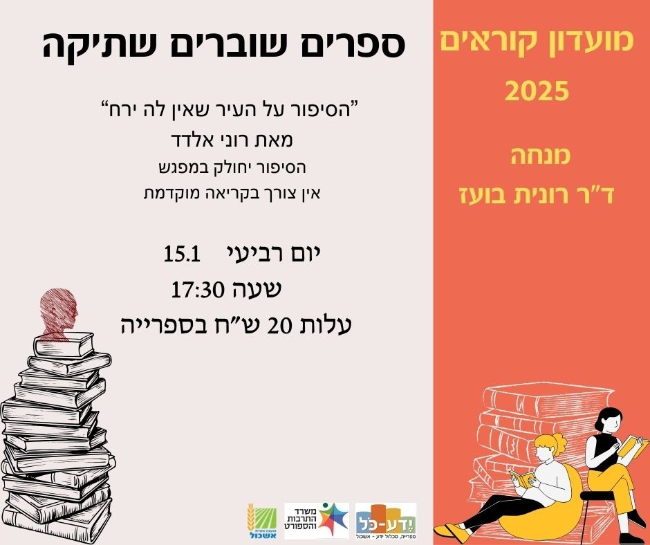 הוסף ללוח שנה 2025-01-15 00:00:00 2025-01-15 01:00:00 Asia/Jerusalem ספרים שוברים שתיקה - הסיפור על העיר שאין לה ירח למידע מלא: http://www.eshkol.info/events/1193/ ספריית ידע כל