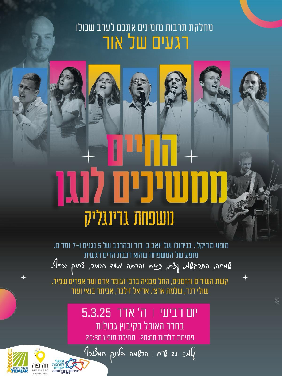 מופע מוזיקלי בניהולו של יואב בן דוד ובהרכב של 5 נגנים ו-7 זמרים.