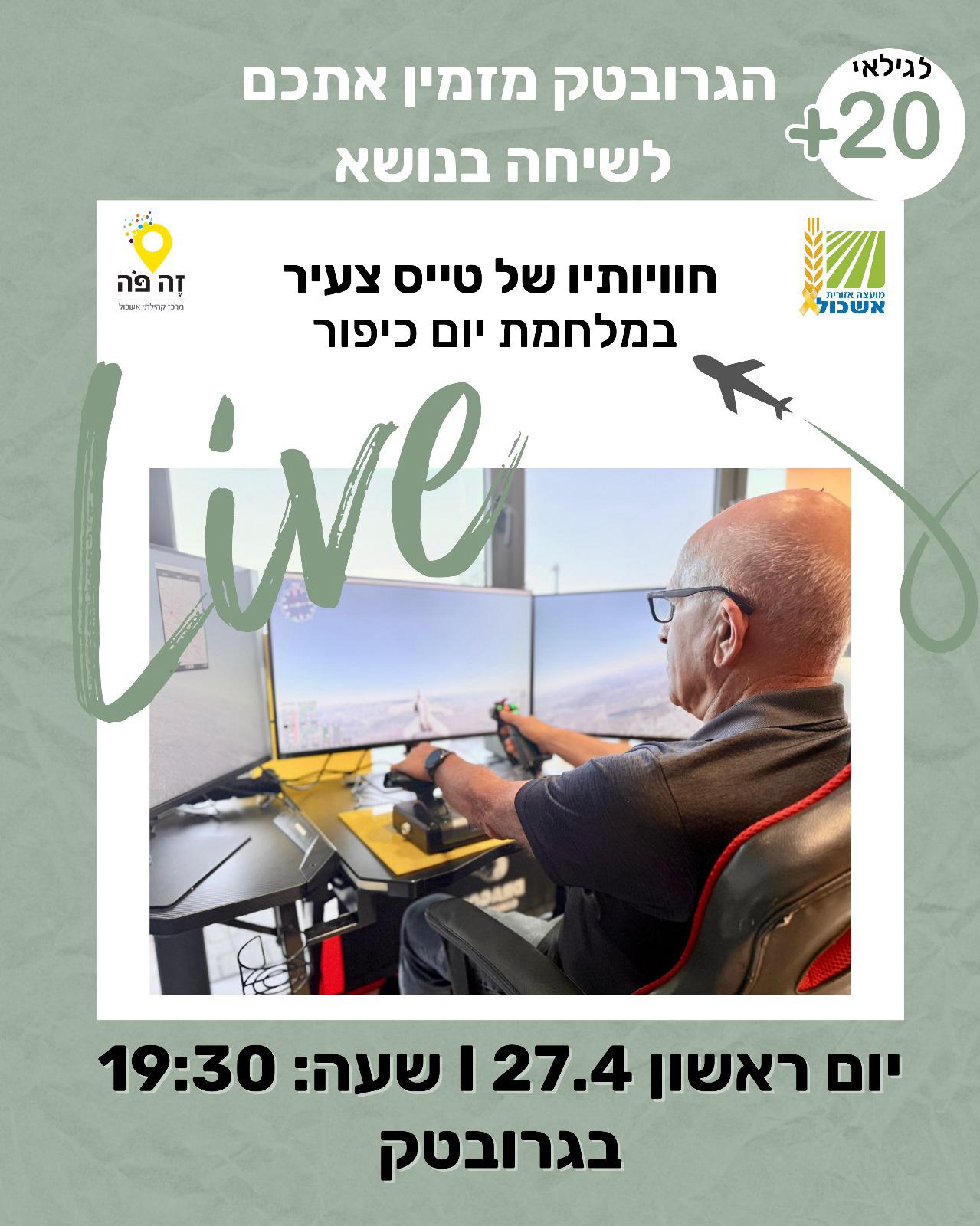 הוסף ללוח שנה 2025-04-27 00:00:00 2025-04-27 01:00:00 Asia/Jerusalem חוויותיו של טייס צעיר במלחמת יום כיפור למידע מלא: http://www.eshkol.info/events/1247/ גרובטק