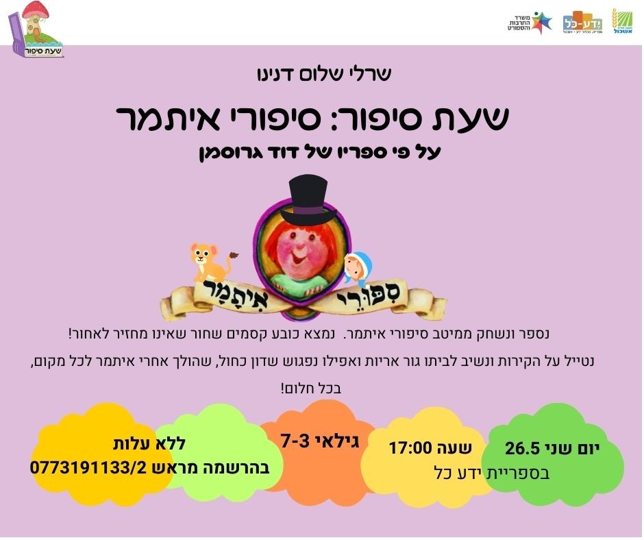הוסף ללוח שנה 2025-05-26 00:00:00 2025-05-26 01:00:00 Asia/Jerusalem סיפורי איתמר למידע מלא: http://www.eshkol.info/events/1255/ ספריית ידע כל