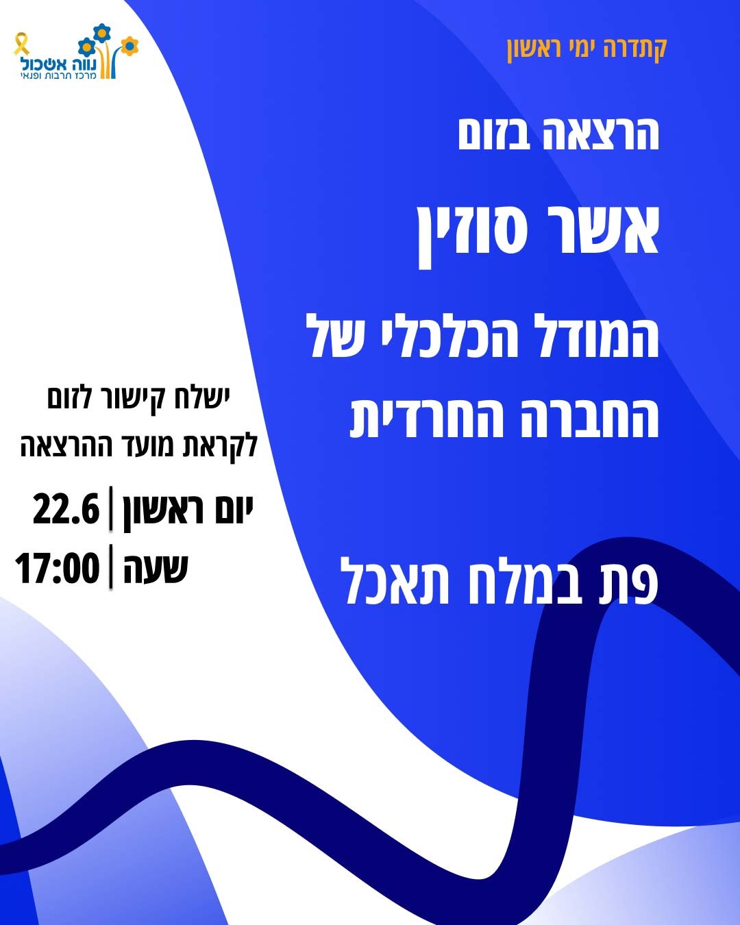 הוסף ללוח שנה 2025-06-22 00:00:00 2025-06-22 01:00:00 Asia/Jerusalem המודל הכלכלי של החברה החרדית למידע מלא: http://www.eshkol.info/events/1286/ זום