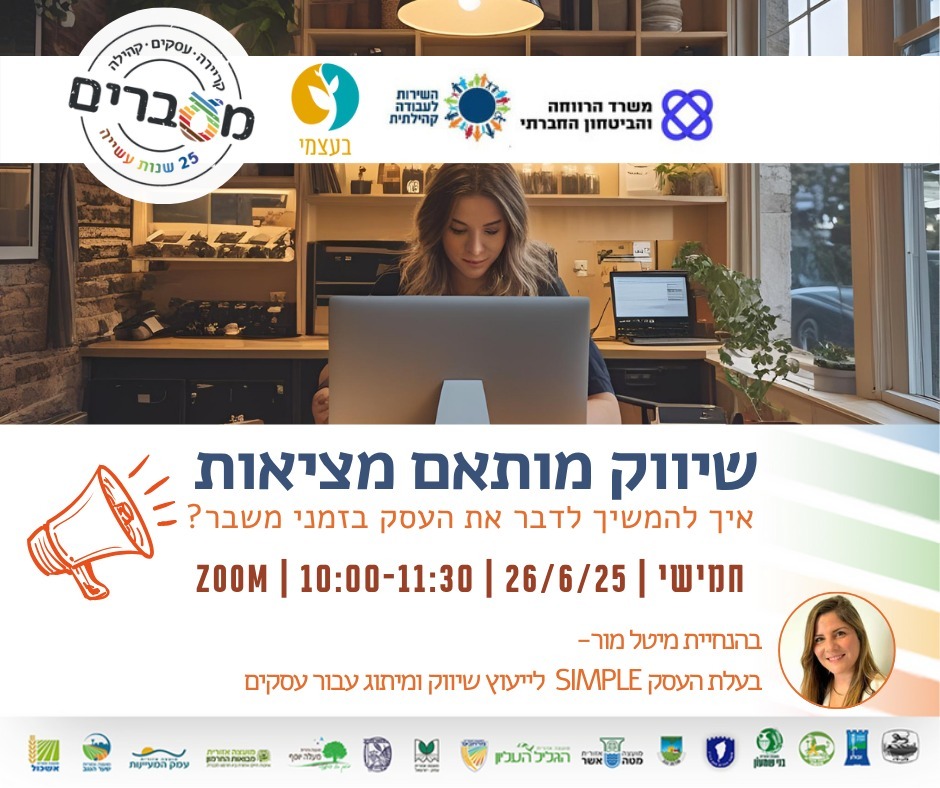 מתאים במיוחד לבעלי ובעלות עסקים שמחפשים בהירות, מיקוד וכלים פרקטיים להמשיך לפעול גם כשהמציאות מאתגרת.