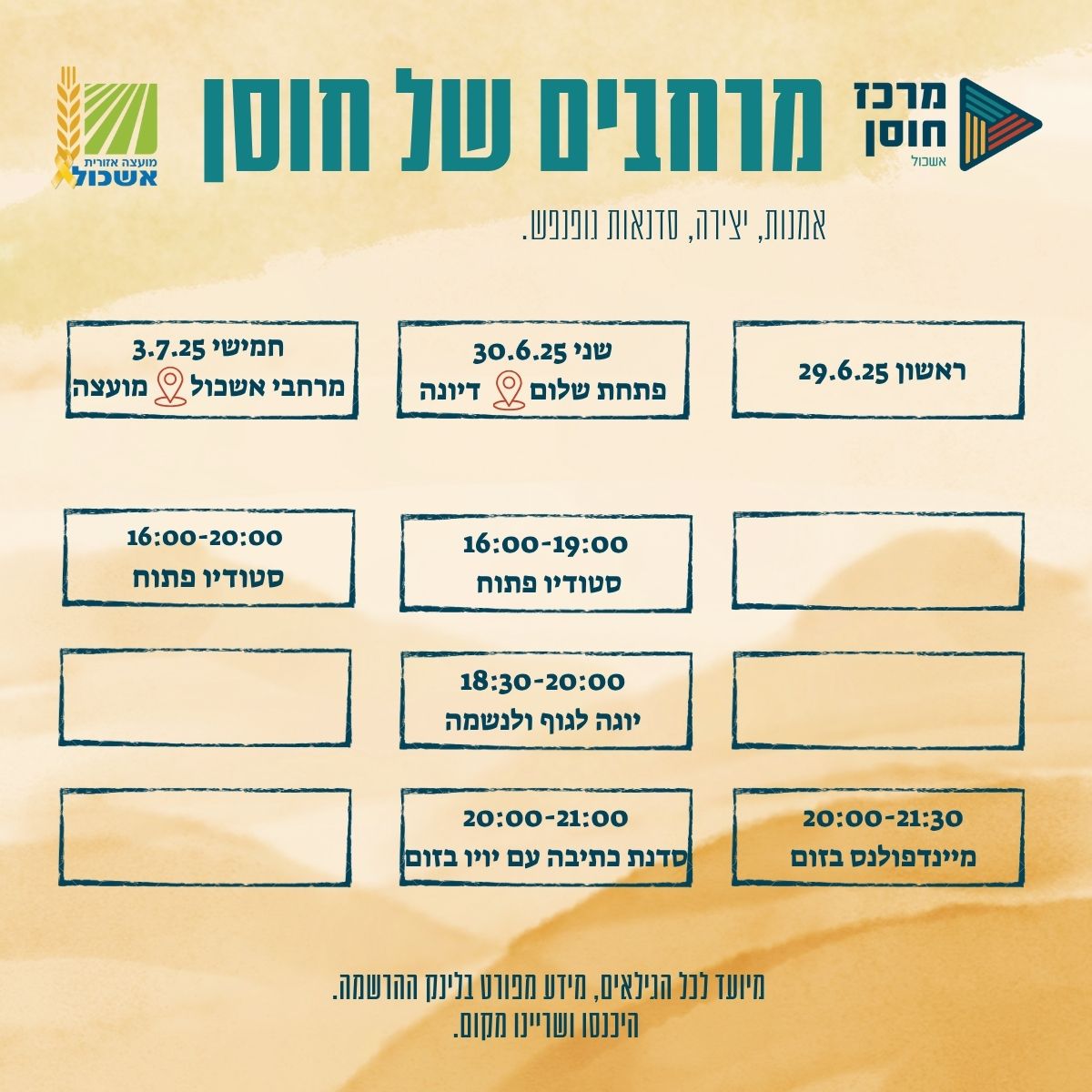 מידע מפורט ומיקום בלינק ההרשמה לפעילות. הרשמו ושריינו לכם מקום.