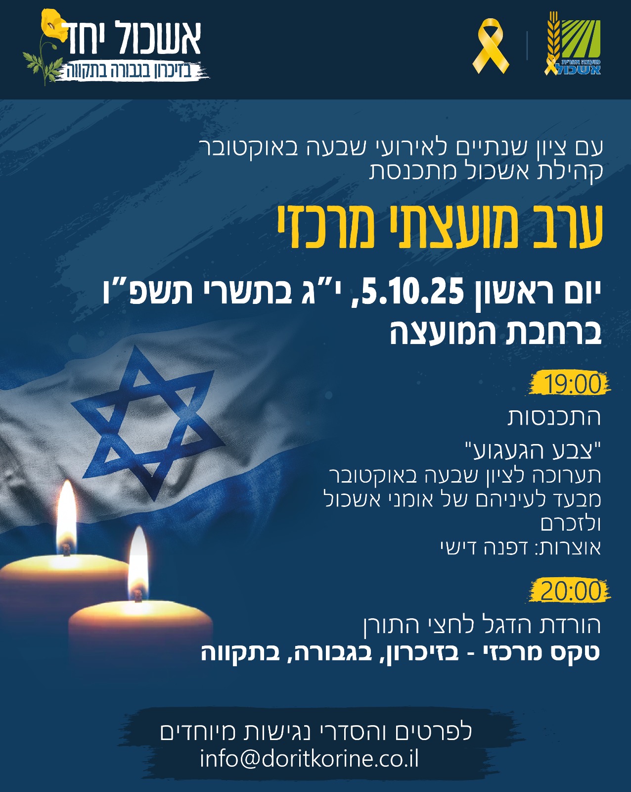 יום ראשון, 5.10 | 19:00 - ברחבת המועצה אזורית אשכול