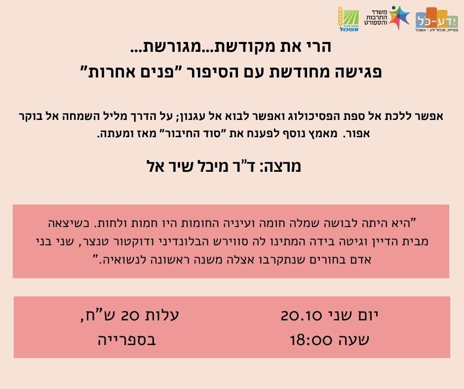 הוסף ללוח שנה 2025-10-20 00:00:00 2025-10-20 01:00:00 Asia/Jerusalem פגישה מחודשת עם הסיפור "פנים אחרות" למידע מלא: https://eshkol.info/events/1349/ ספריית ידע כל
