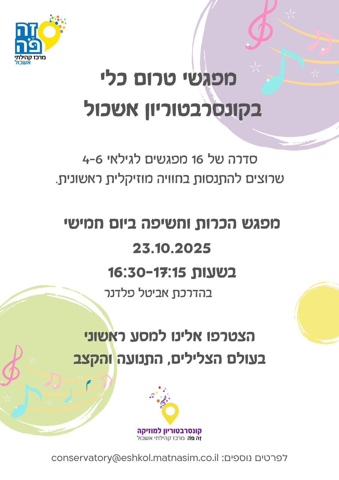 להצטרפות ופרטים נוספים: conservatory@eshkol.matnasim.co.il