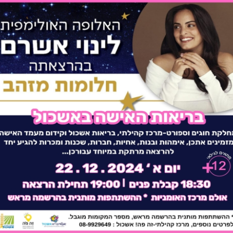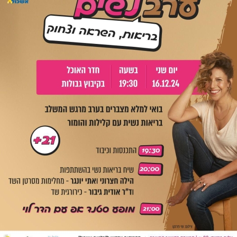 16 דצמברערב נשים - בריאות השראה וצחוקחדר אוכל קיבוץ גבולות -