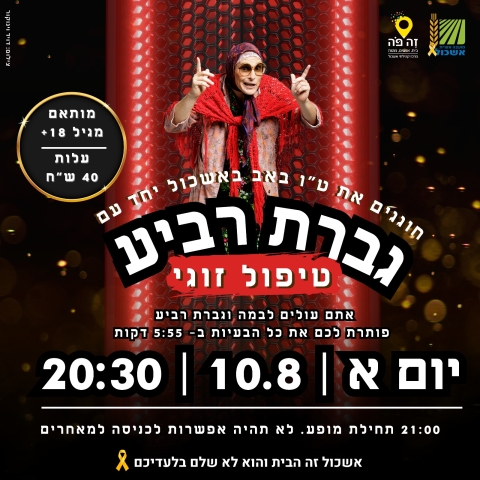 10 אוגוסטגברת רביע - טיפול זוגימרכז אומנויות אשכול -