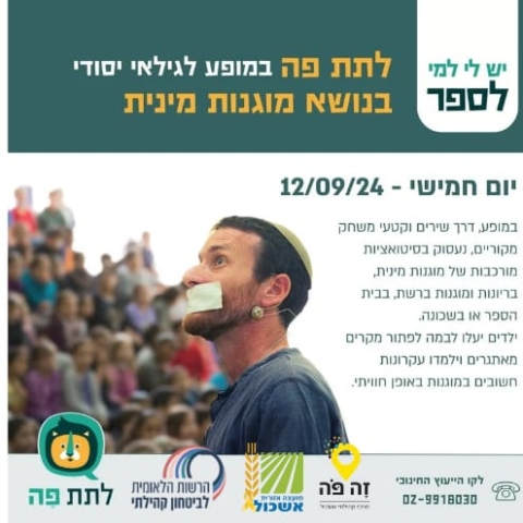 12 ספטמברלתת פה - מופע מוגנות לילדי ג' - ו' -