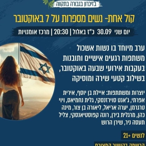 30 ספטמברקול אחת - נשים מספרות על ה7 באוקטוברמרכז אומנויות