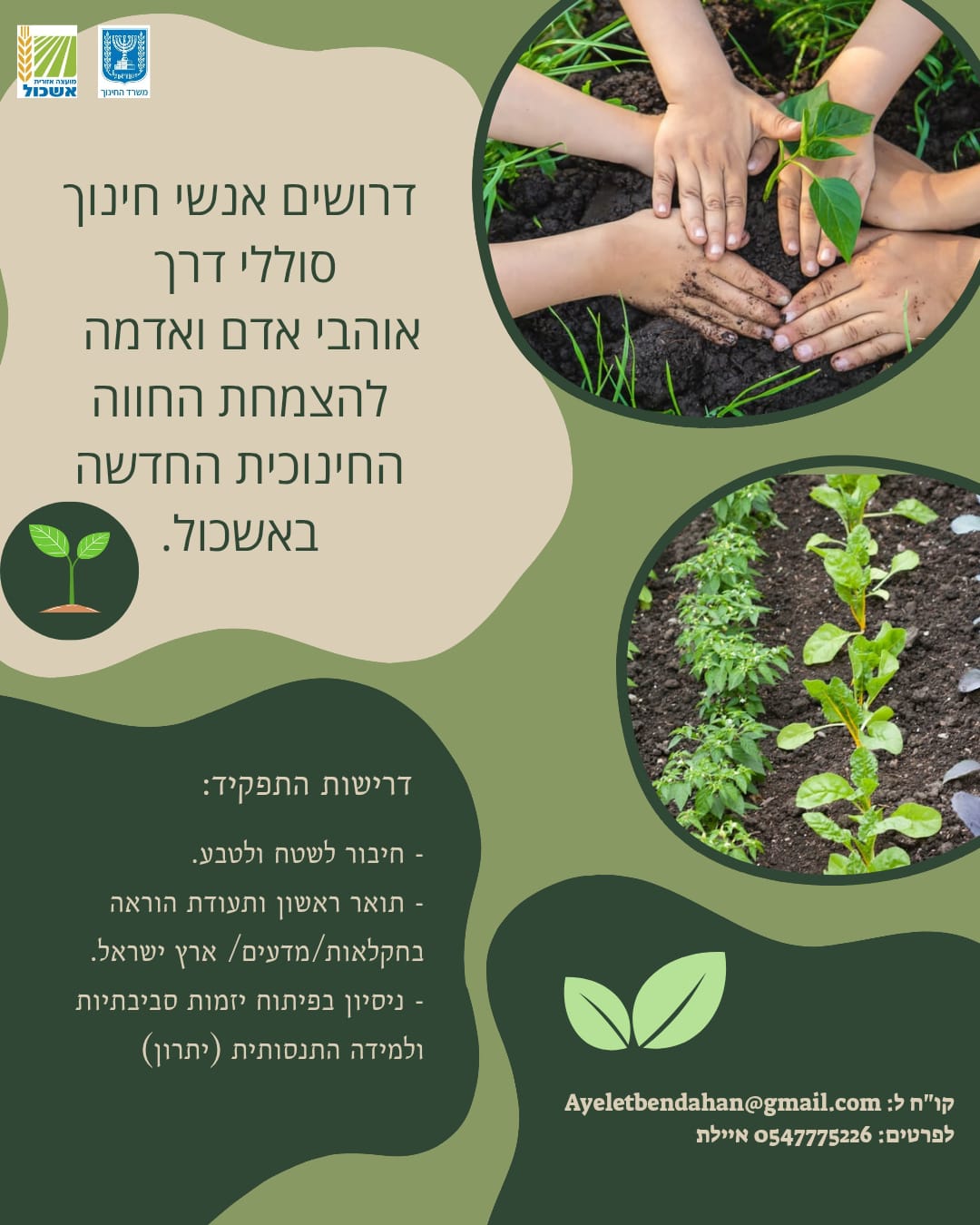 מכרז למשרה :אנשי חינוך לחווה החינוכית באשכול