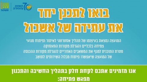 17.02 | שעה 19:30 | מפגש פתיחה לאיתור ופיתוח מנועי צמיחה כלכליים במועצה אזורית אשכול