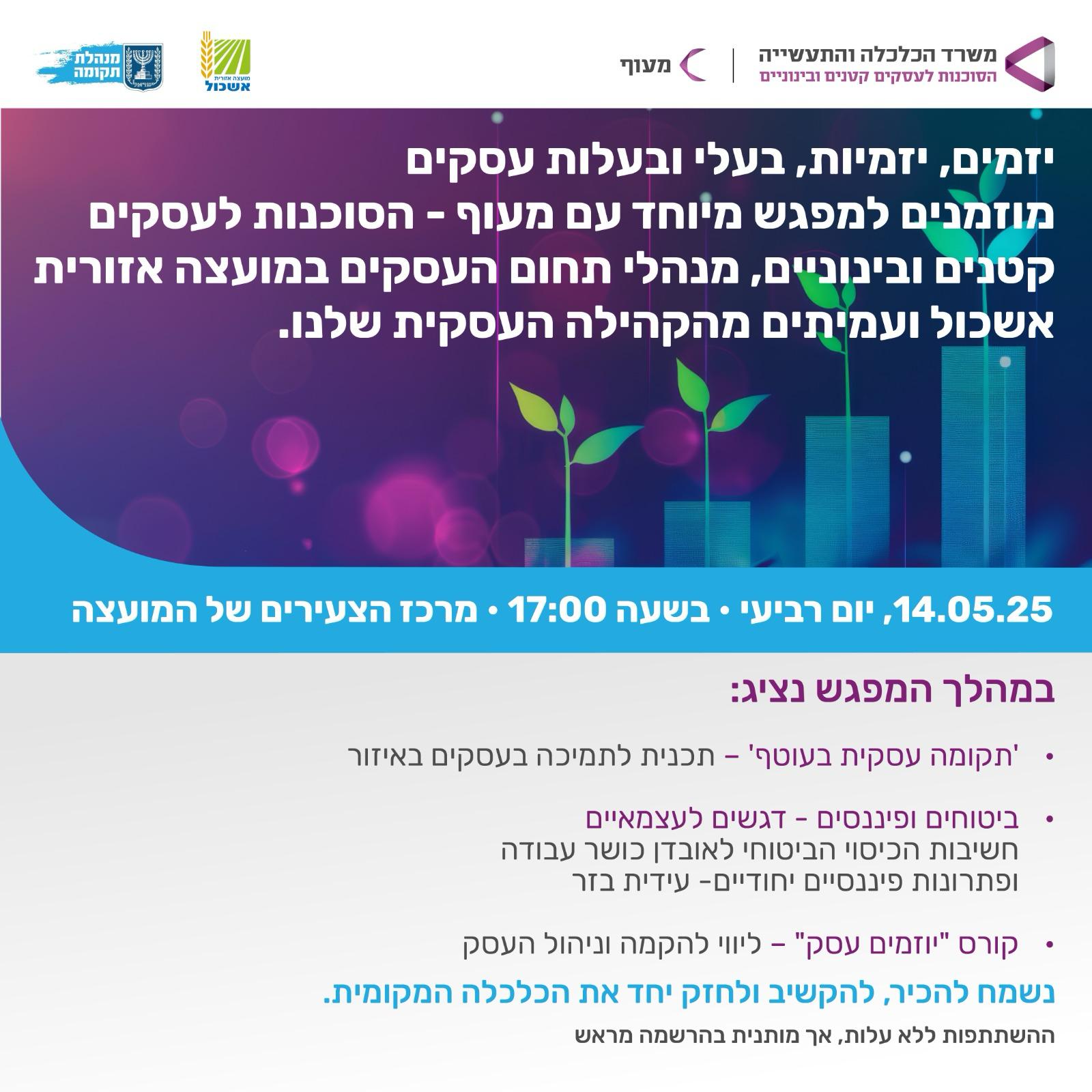 מוזמנים למפגש עם מעוף הסוכנות לעסקים קטנים ובינוניים בו יוצגו כלים חשובים הניתנים בסבסוד גדול על מנת לתמוך בעסקים בחבל תקומה.