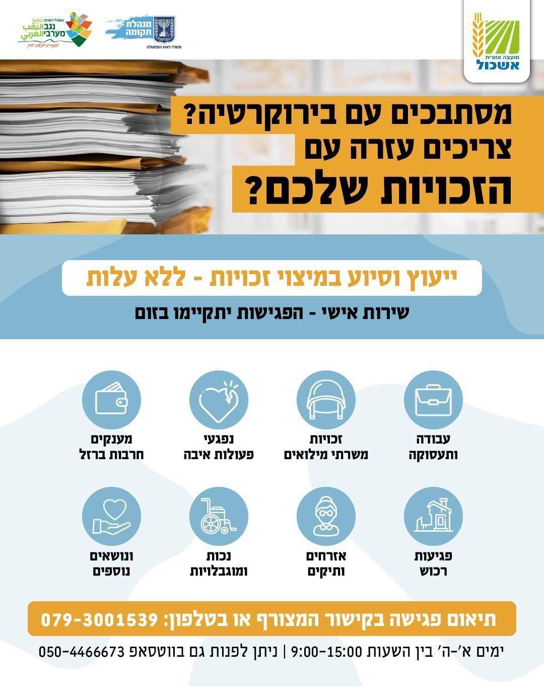 תושבים יקרים, מוזמנים לתאם פגישה אישית בזום לסיוע במיצוי זכויות.