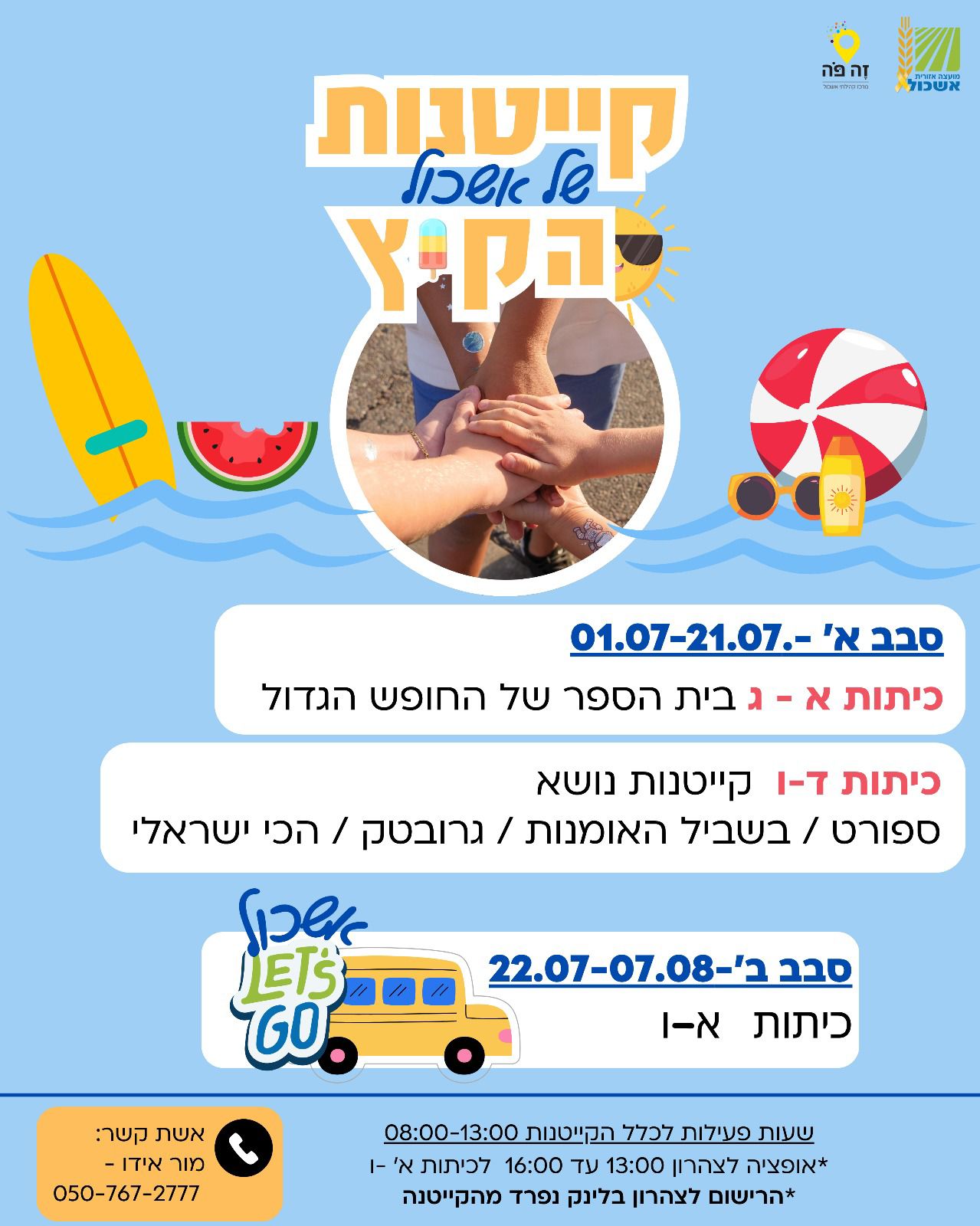 קייטנת ביה״ס של החופש הגדול (א-ג), הכי ישראלי (ד-ו) ואומנות (ד-ו) יתקיימו במקום עורפי (מיקום מדוייק יתפרסם בקרוב)