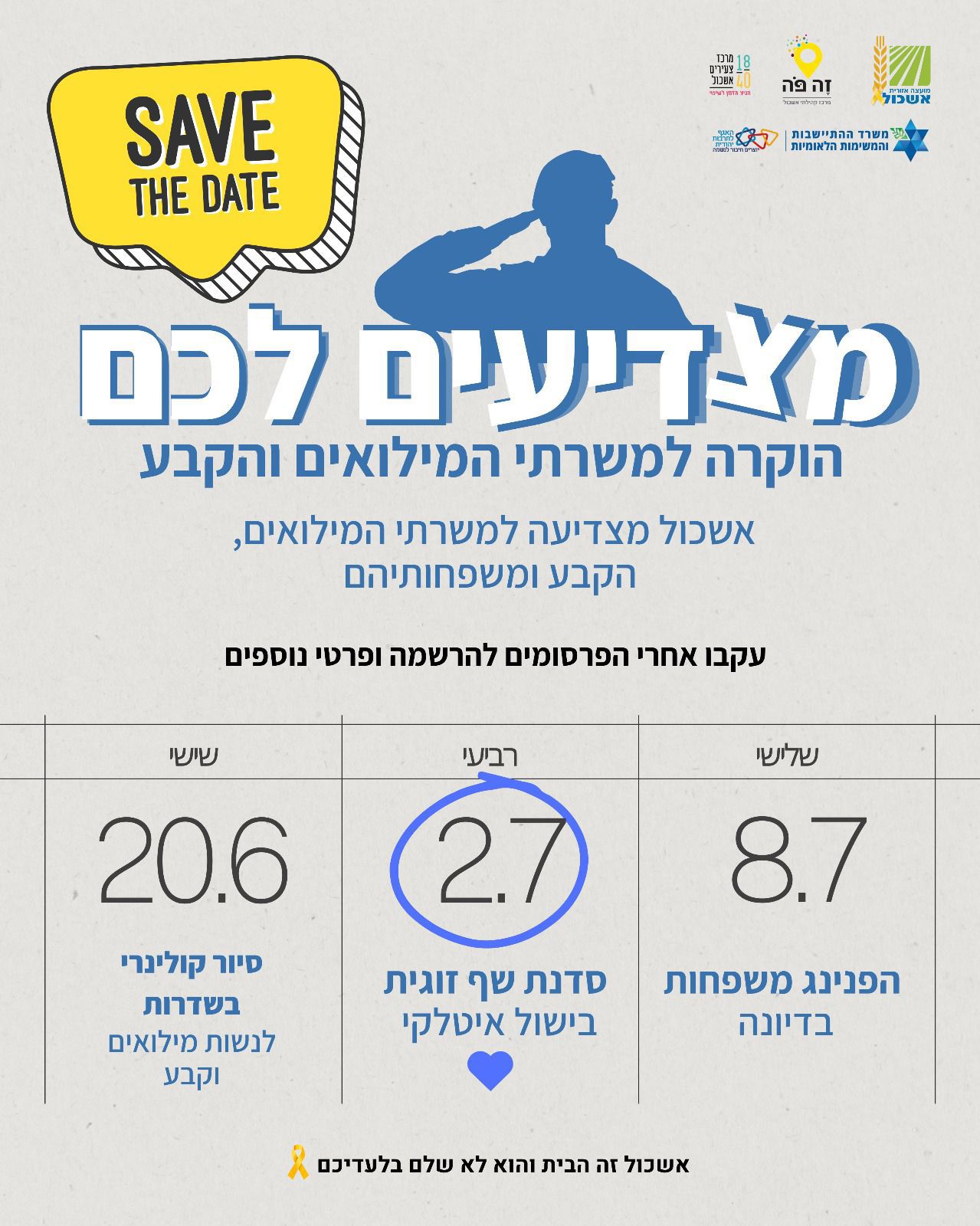 מוזמנים לאירועי ההוקרה של אשכול למשרתי הקבע והמילואים ובני משפחותיהם