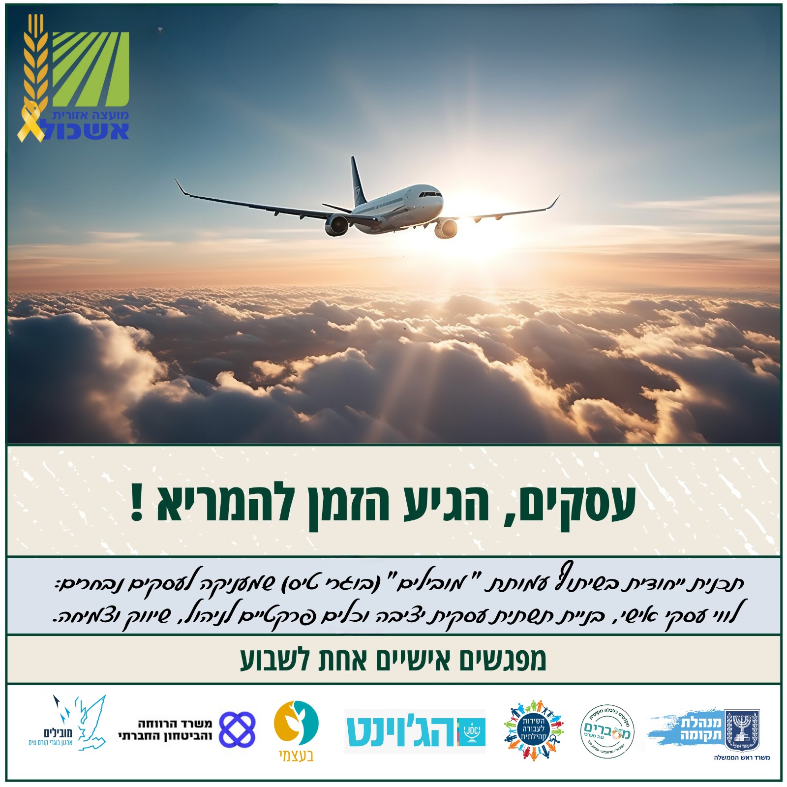מועצה אזורית אשכול, בשיתוף עמותת 'מובילים' (בוגרי טיס) בנו במיוחד עבורכם תכנית ייחודית לפיתוח עסקים קטנים ובינוניים!