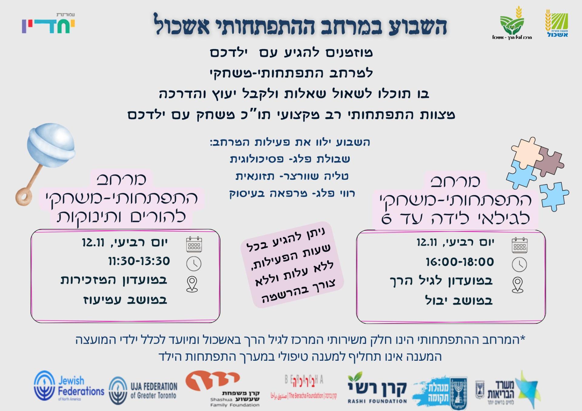 יום רביעי, 12.11 במרחב ההתפתחותי אשכול: