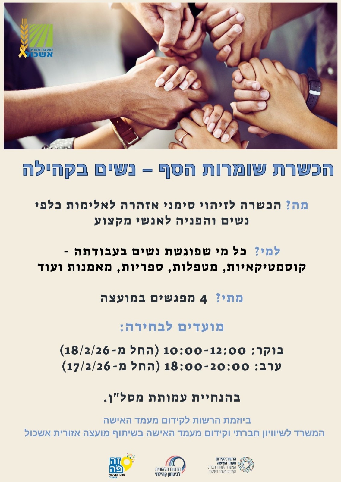 הכשרה מקצועית לנשים שפוגשות נשים במסגרת עבודתן. זו לא עוד הכשרה. זו אחריות חברתית.