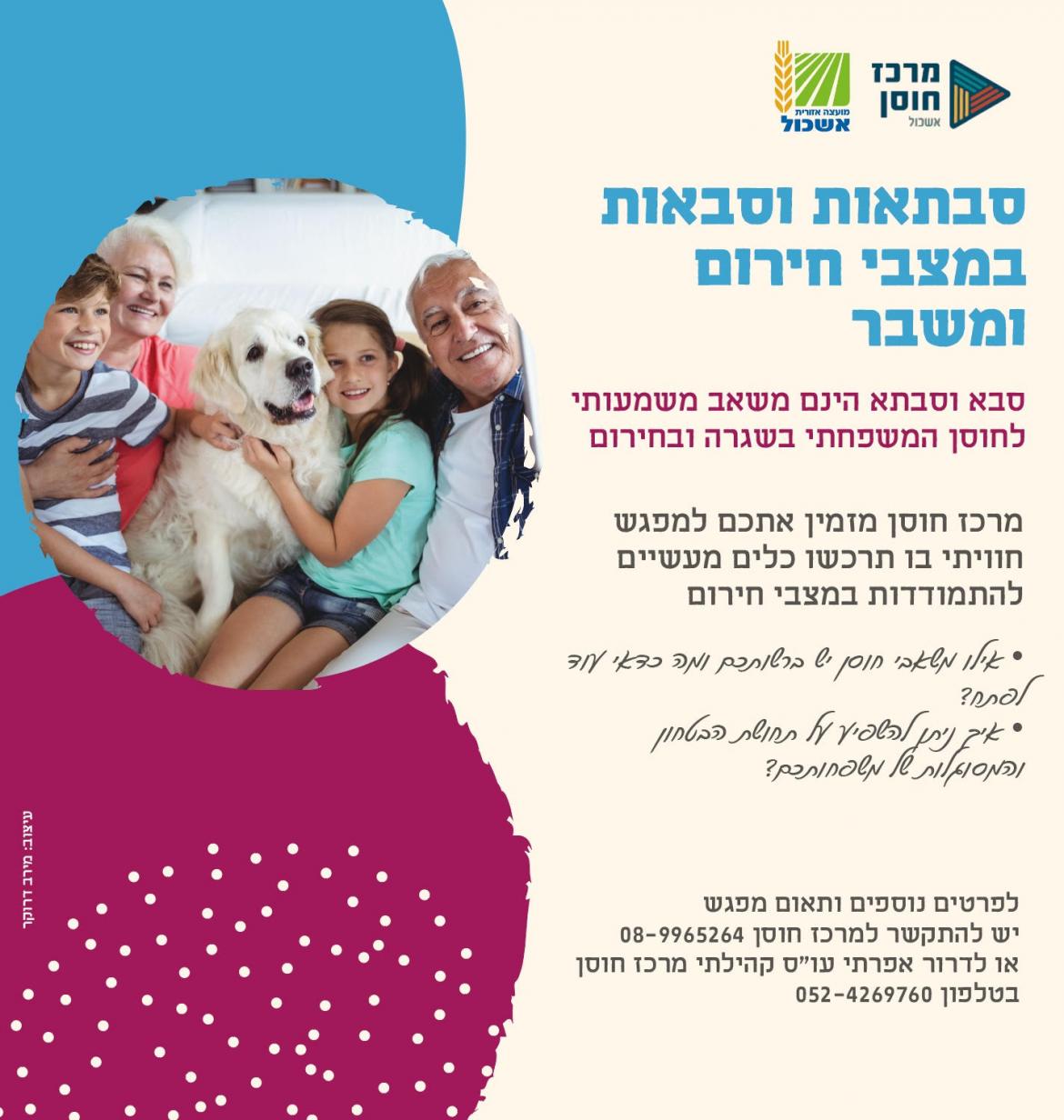 מרכז חוסן אשכול מזמין אתכם למפגש חוויתי: כלים מעשיים להתמודדות עם מצבי חירום, המשאבים שיש ברשותנו וכיצד נוכל להשפיע על תחושת המסוגלות של משפחתנו?