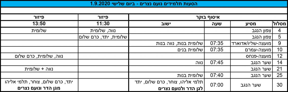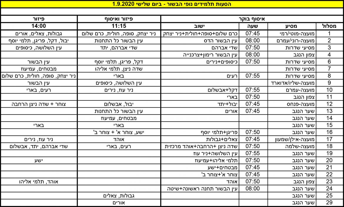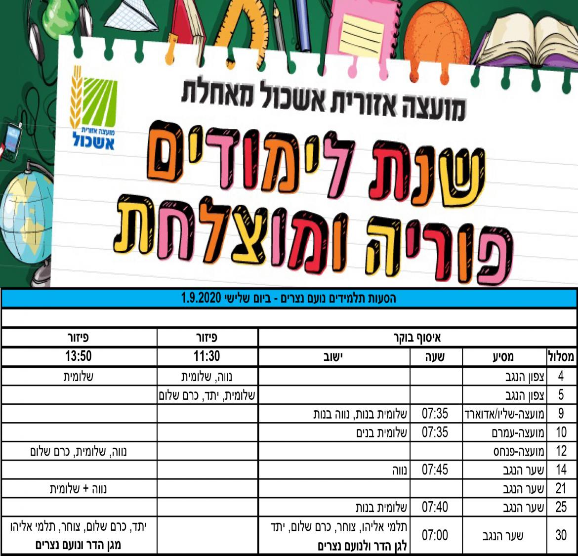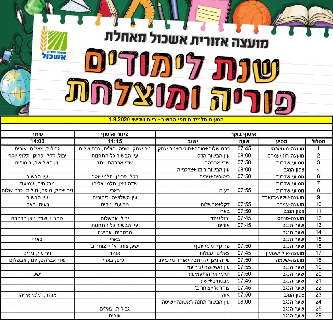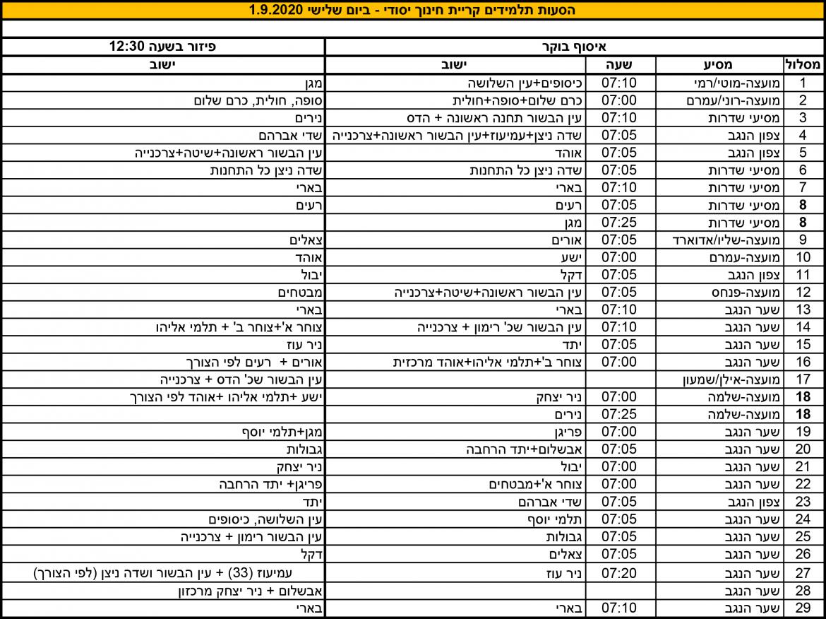 זמני הסעות תלמידים וחלוקת הקווים ליום הראשון ללימודים