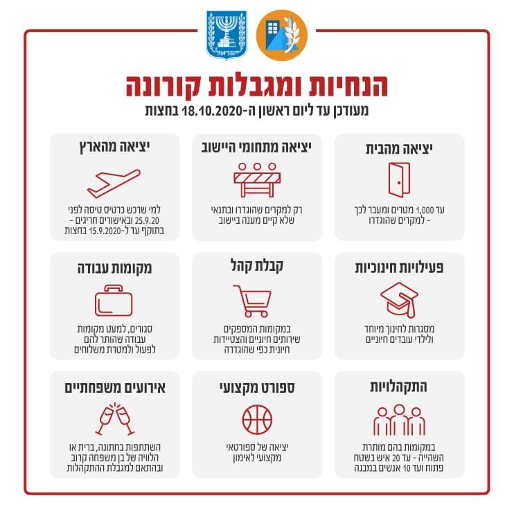 הנחיות ומגבלות קורונה עד ה-18.10 בחצות