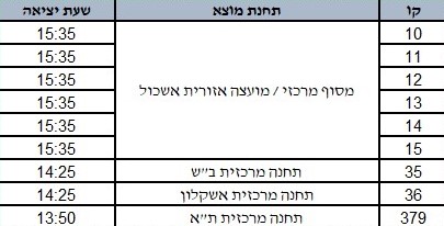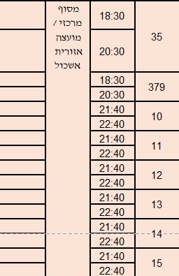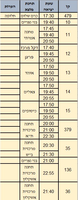 להלן זמני הניסעות העדכניים במוצ"ש במועצה אזורית אשכול: