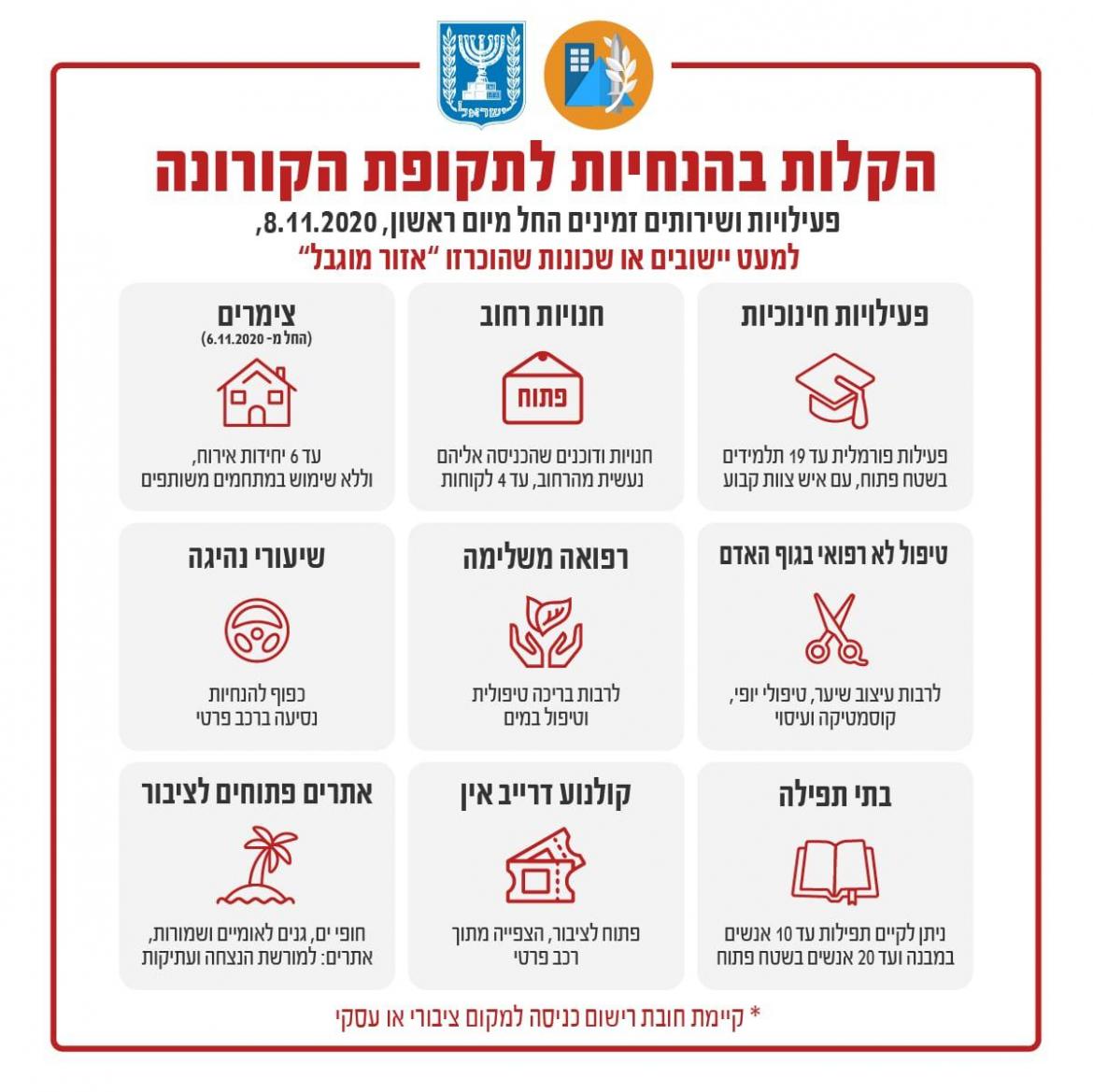 הקלות בהנחיות שיכנסו לתוקף מחר, יום ראשון, 8.11