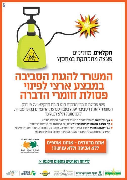 המשרד להגנת הסביבה יוצא למבצע ארצי לאיסוף ולפינוי של פסולת חומרי הדברה, שאריות שפג תוקפן, חומרים שיצאו משימוש וחומרים באריזות פגומות. האיסוף במימון מלא של המשרד להגנת הסביבה ובשיתוף המועצות האזוריות.